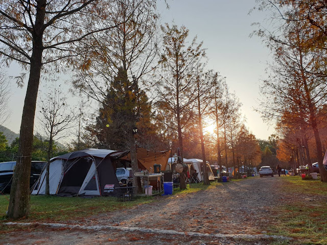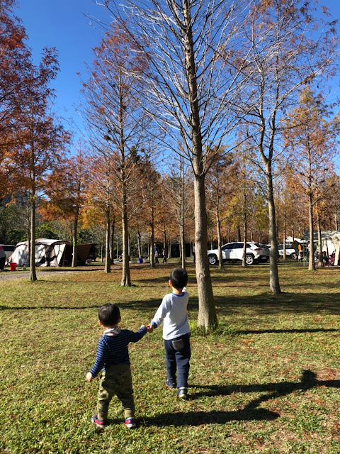 搭配背景滿滿落羽松橘,第一次露營就這麼浪漫真是不像話~